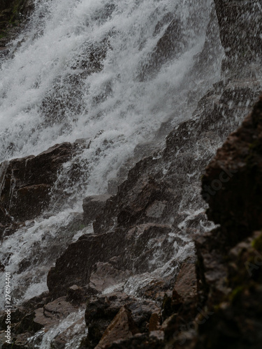 © NCKAHDEP, Fototapeta premium Stormy waters of the northern waterfall in a rocky gorge on the shores of the cold sea