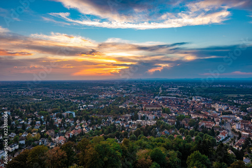 Fototapeta premium Stormy Weather over Karlsruhe, photographed from Turmberg, Durlach, Germany, 2018.