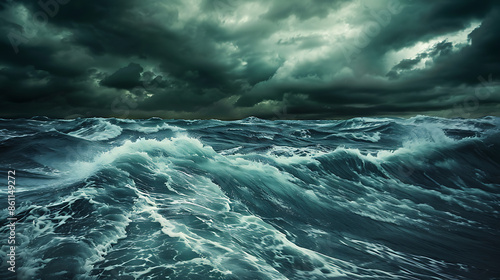 Fototapeta premium Stormy winds at sea, high waves, overcast sky