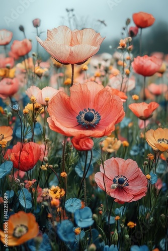 © Suparat, Fototapeta premium storybook-style floral page with handwritten names and isometric sketch