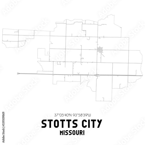 Naklejka premium Stotts City Missouri. US street map with black and white lines.