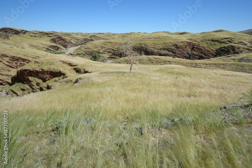 © anni94, Obraz premium Straße durch den Namib-Naukluft Nationalpark nach der Regenzeit