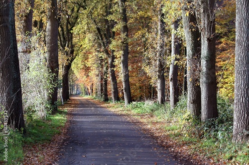 Obraz premium Straße im sonnigen Herbstwald