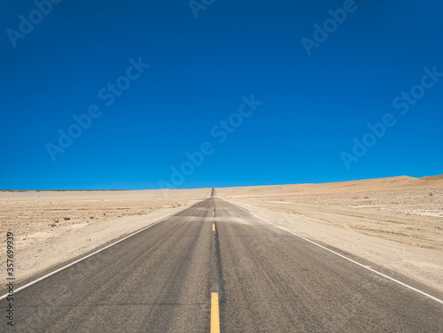 Fototapeta premium Straße in der Wüste mit leichten Sandverwehungen