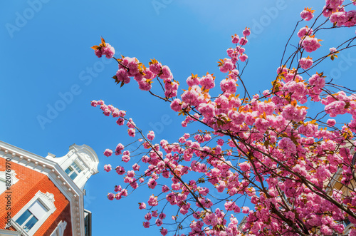 Fototapeta premium Straße mit Kirschblüte in der Bonner Altstadt