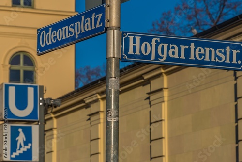 Obraz premium Straßenschild Odeonsplatz Hofgartenstraße München