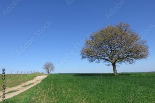 © canoista83, Fototapeta premium Strada di campagna con quercia nel campo