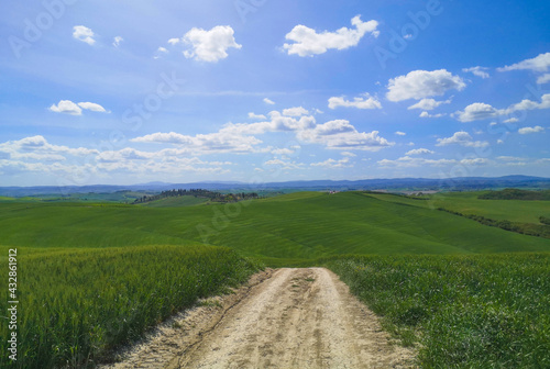 © fotoforfun, Obraz premium Strada tra le verdi colline di grano nella campagna di grano
