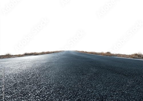 Naklejka premium Straight asphalt road disappearing into the horizon, isolated on white