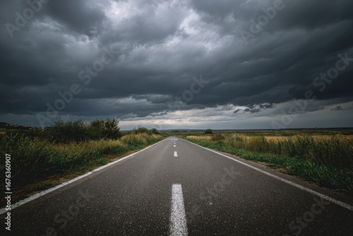© Kafka, Naklejka premium Straight asphalt road under a stormy sky