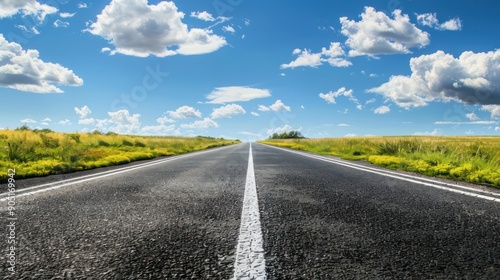 © zipop, Fototapeta premium Straight asphalt road with sky clouds background