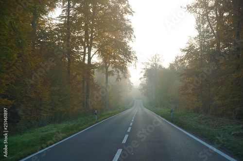 © Max, Fototapeta premium Straight country road in fog