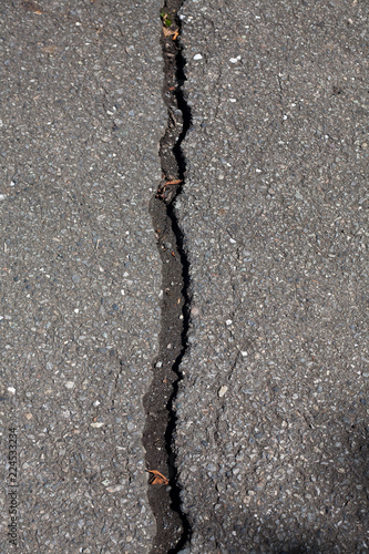 Obraz premium Straight crack in asphalt road