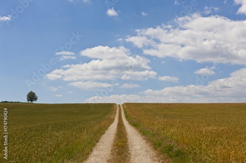 © imageBROKER, Fototapeta premium Straight dirt road through fields