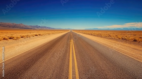 Fototapeta premium Straight empty road through barren desert, plenty of room for copy in the...