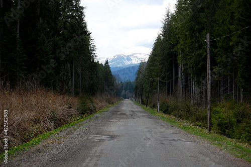 Obraz premium Straight empty road to the mountains