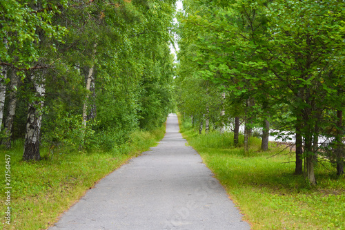 Obraz premium Straight pathway between green grasses and trees