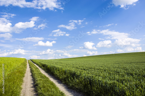Fototapeta premium Straight road through fields