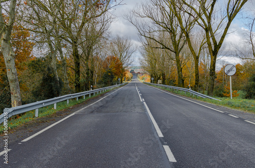 Fototapeta premium Straight section of a national road in Galicia, Spain.