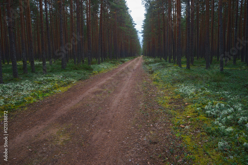 Fototapeta premium Straight track through scenic pine forest