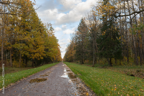 © neonnspb, Fototapeta premium straight walking path with puddles in autumn park