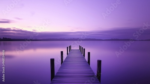 © Pixora Labs, Fototapeta premium Straight wooden pier over a lake, purple sky background