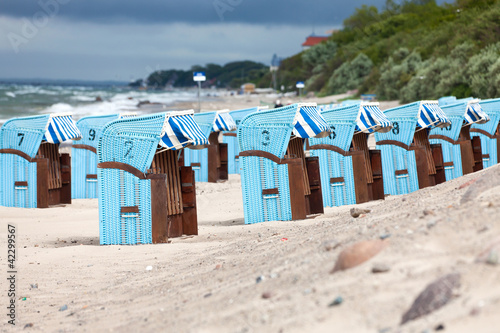 © PhotoArt Thomas Klee, Naklejka premium Strandkörbe am Strand der Ostsee