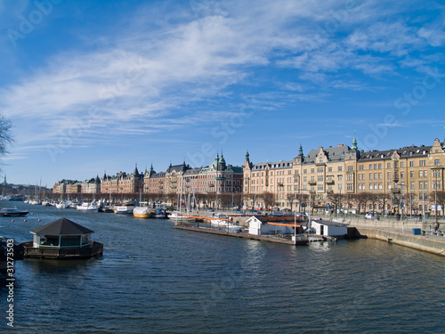 Fototapeta premium Strandvagen street architecture Stockholm, Sweden