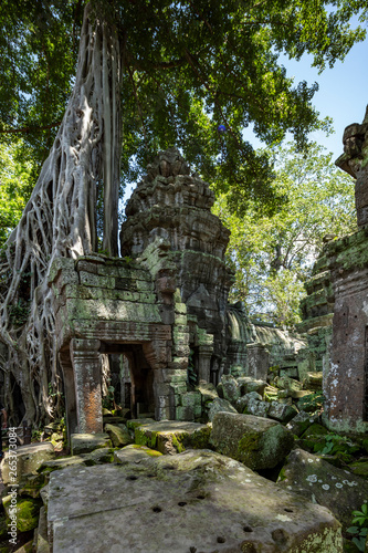 Fototapeta premium Strangler fig tree growing on the ruins of Ta Prohm temple, Siem Reap, Cambodia