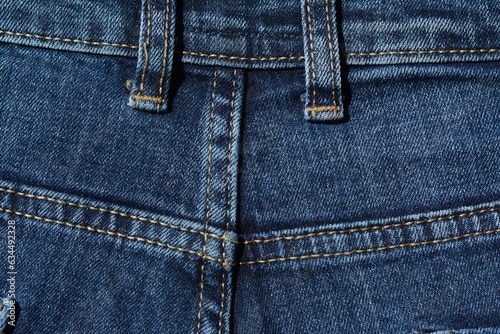 Fototapeta premium Straps for a belt in blue jeans. Back view
