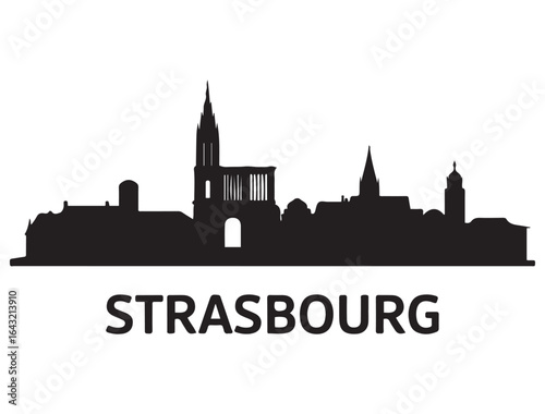 © firoz, Obraz premium Strasbourg skyline silhouette. Vector illustration. Vector black silhouette. with white background.