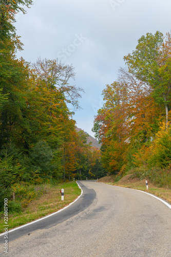 Fototapeta premium Strasse durch herbstliche Landschaft