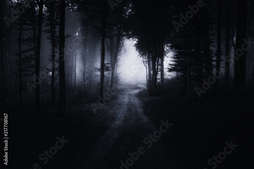 © andreiuc88, Fototapeta premium straszna ścieżka w ciemnym lesie nocą, surrealistyczny krajobraz