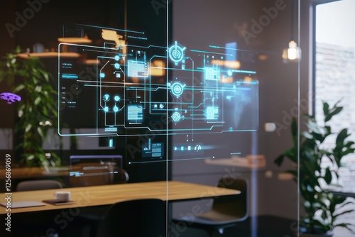 Fototapeta premium Strategic planning enhanced with AI-generated holographic decision trees.