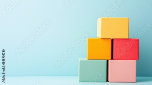 © เด็กชาย นุ่มนิ่ม, Fototapeta premium Strategic planning resources evaluation concept. Colorful building blocks stacked against a blue background.