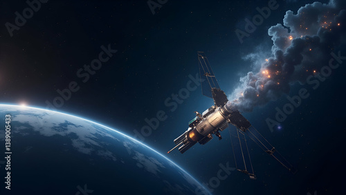 Fototapeta premium Strategic Space Geopolitics: Infographics on Satellite Diplomacy, Orbital Warfare, and Global Aerospace Power Dynamics - Stock Photos with Empty Space for Customization