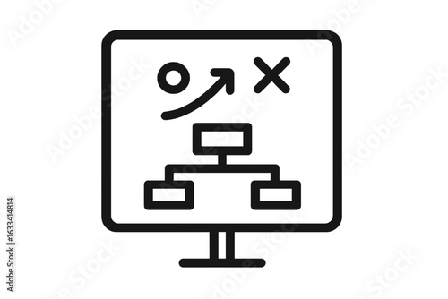 Fototapeta premium Strategy chart on computer screen with arrows and flow diagram planning...