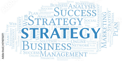 © sharafmaksumov, Obraz premium Strategy word cloud create with text only.