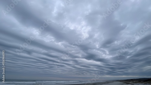 Fototapeta premium Stratus clouds spread a grey blanket across the sky, signaling an overcast day.