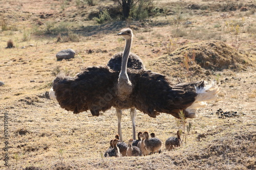 Naklejka premium Straußenbabies mit Mama 1614
