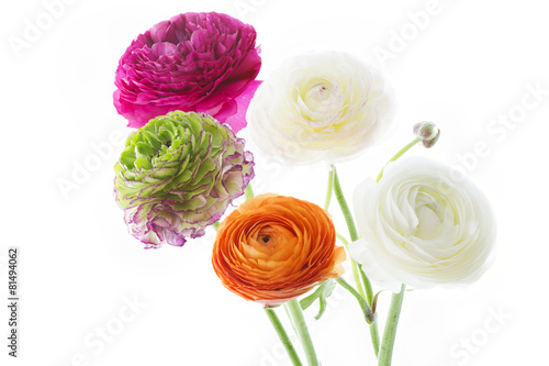 © Harald Biebel, Fototapeta premium Strauß mit Ranunkel auf weißem Hintergrund