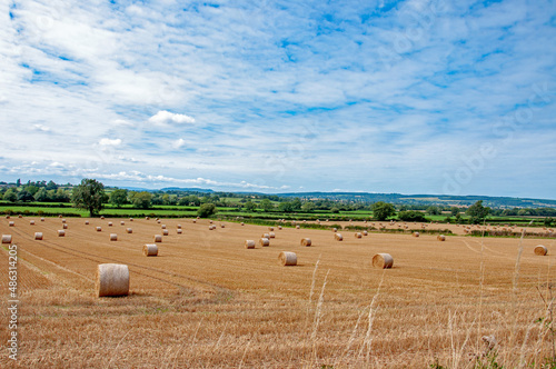 © Jenn's Photography , Obraz premium Straw bales in the autumn fields.