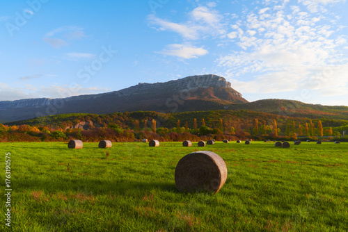 © poliki, Fototapeta premium Straw bales in the meadows in Sakana, Navarre