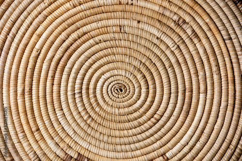 Naklejka premium Straw wicker beige eco friendly spiral abstract background copy space