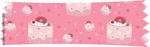 Fototapeta premium Strawberry cake washi tape on transparent background.