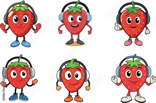 © Jadab Chandra Ray, Obraz premium strawberry character wearing a headphone vector Illustration