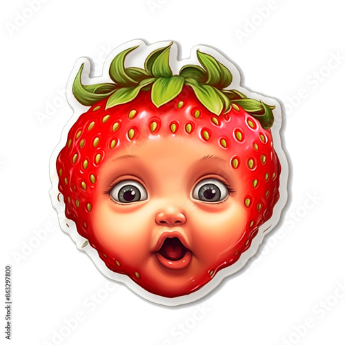 Obraz premium Strawberry Fruit Image with Child's Face, for Stickers, T-shirt Print, Cap,...