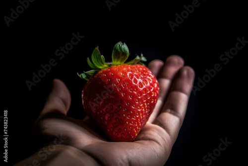 © MadalinaIonela, Obraz premium Strawberry in hand - Generative AI