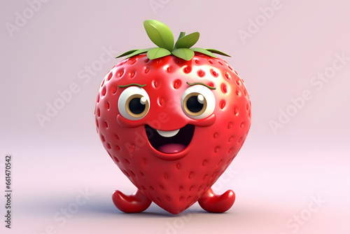 Fototapeta premium Strawberry With Cute Face 3d Rendering