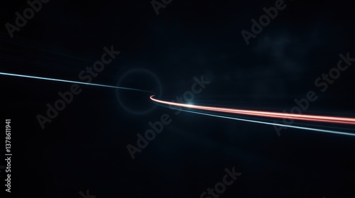 © Andi, Fototapeta premium Streaks of Light Speeding Through Darkness with a Ring Feature